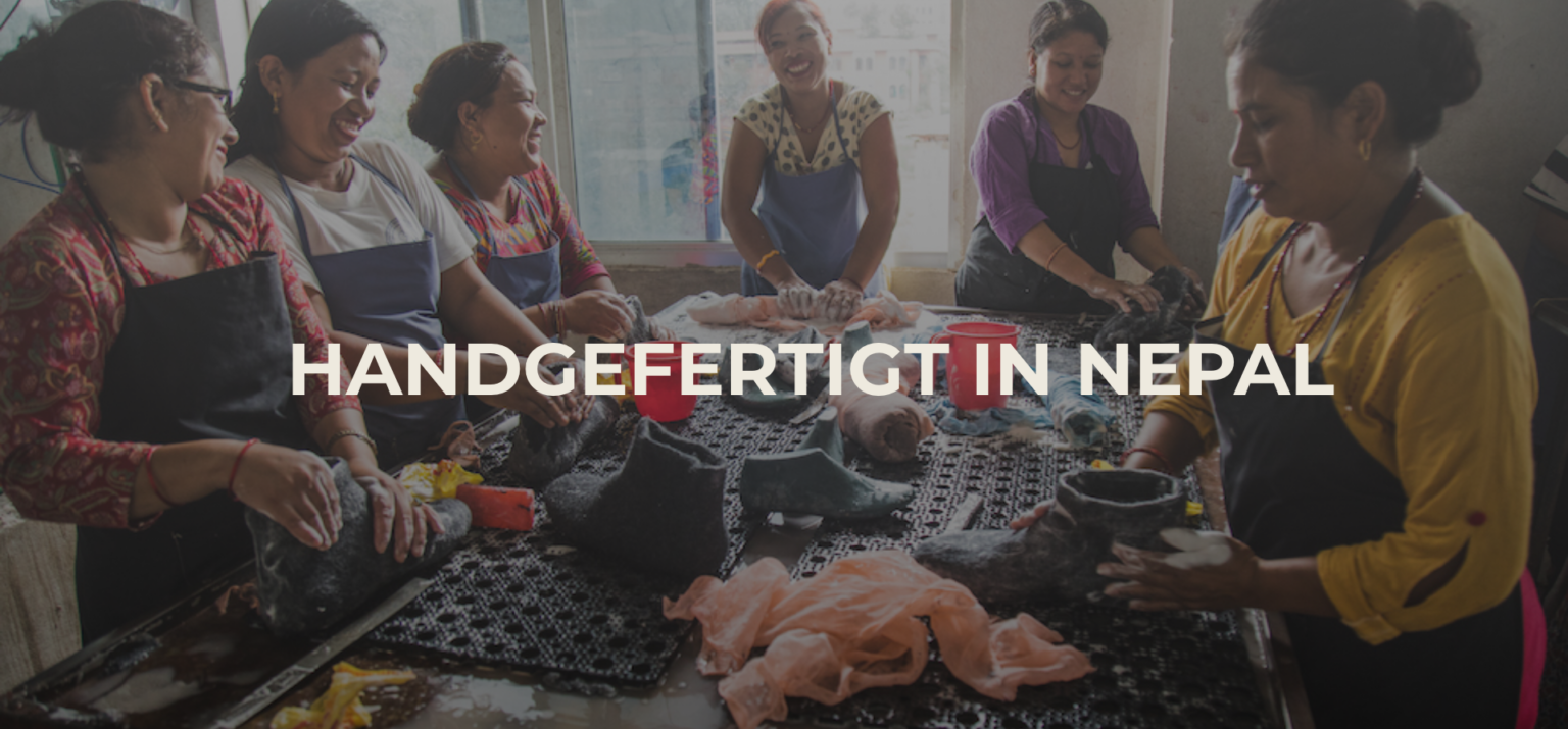 Unsere Hausschuhe werden zu 100 % in Handarbeit mit der sogenannten Nassfilztechnik von erfahrenen und engagierten Frauen aus Nepal hergestellt, was unsere Schuhe einzigartig macht.