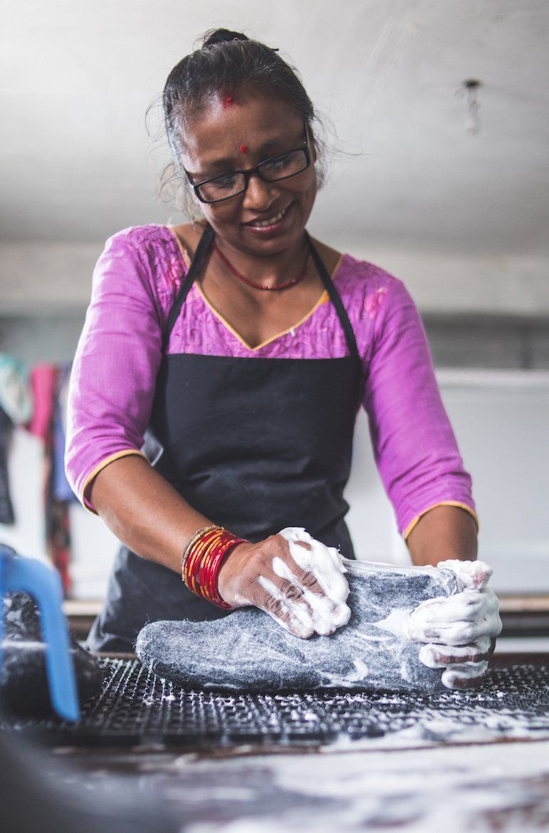 Wir engagieren uns für Nachhaltigkeit, soziale Verantwortung und vor allem für die Herstellung von Qualitätsschuhen ohne den Einsatz von Chemikalien und anderen schädlichen Stoffen. Alle SHUS-Pantoffeln werden von geschickten und engagierten Frauen aus Nepal handgefertigt, so dass jeder Wollpantoffel ein Unikat ist. Wir wollen Frauen in Nepal die Möglichkeit geben, eine sinnvolle Arbeit in einem guten Umfeld zu finden. Wir arbeiten ständig daran, alle Prozesse in unserer Produktion zu optimieren, was sowohl Ihnen als Verbraucher als auch unserer grünen Umweltpolitik zugutekommt.
